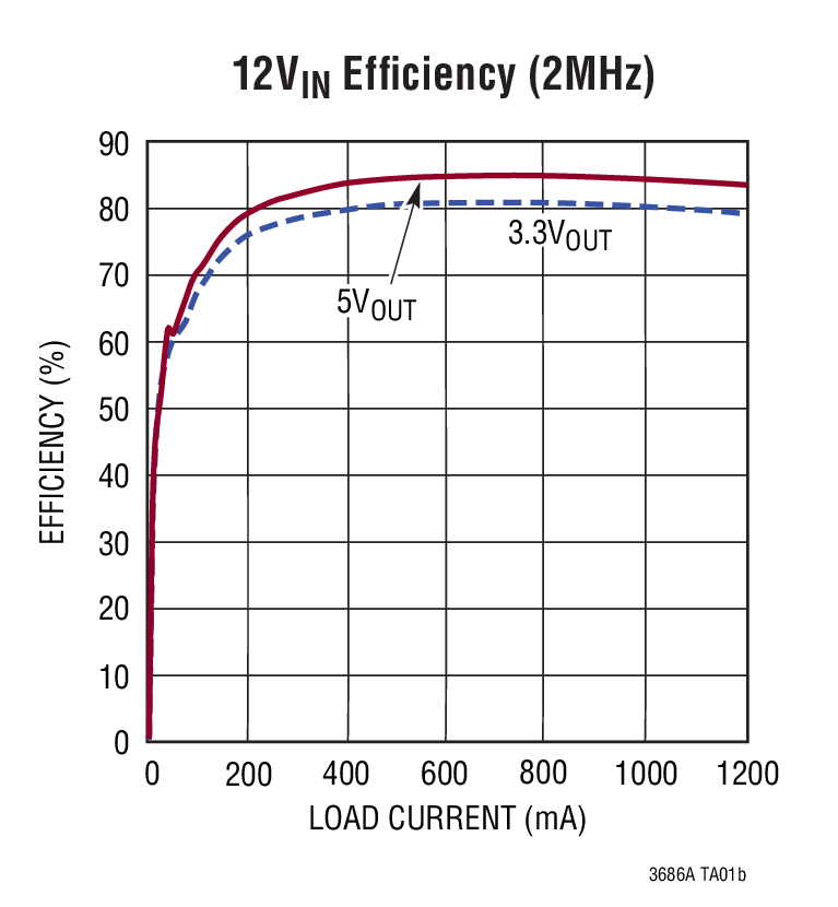 LT3686A - 采用 3mm x 3mm DFN 和 MSE 封装的 37V/1.2A 降压型稳压器