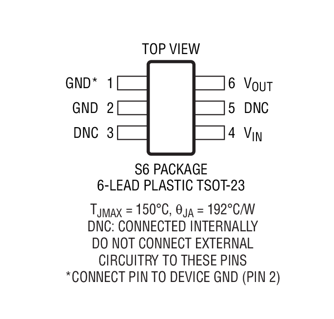 LT6654 基准采用 6 引脚 SOT-23 封装和和 8 引脚 LS8 封装。 LS8 是一个 5mm x 5mm 表面贴装严密封装,可提供出色的稳定性。